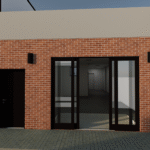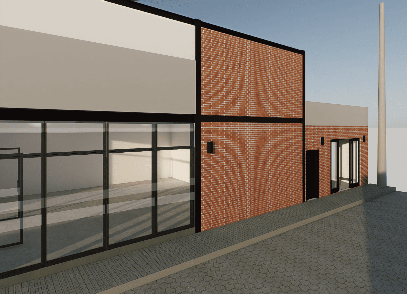 A alvenaria foi executada em blocos de concreto, garantindo solidez, durabilidade e facilidade construtiva. O acabamento em tijolos aparentes harmoniza-se perfeitamente com os detalhes em pintura branca, criando uma identidade visual moderna e profissional. As alvenarias recebem o famoso padrão tijolinho aparente, que confere caráter e autenticidade ao projeto, enquanto a pintura branca complementa a arquitetura com leveza e clareza visual.